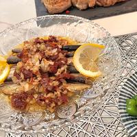 - 4 お皿にオイルサーディンを盛り付け、3をかけます。パセリを散らして完成です。