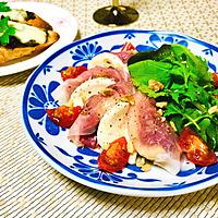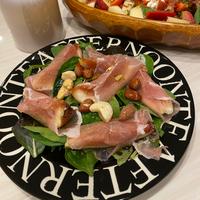 イチジクの甘みと生ハムの塩気のバランスがクセになりそうなサラダでした。モッツァレラチーズも加えています。白ワインビネガー使用。バルサミコ酢も良さそうです。