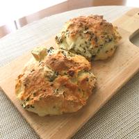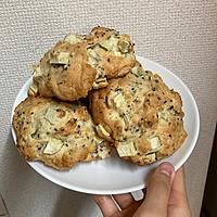 - 6 クッキングシートを敷いた天板に5を4等分して、こんもりと丸く形を整えてのせます。190℃のオーブンで30分焼き、表面にこんがりと焼き色が付いたら完成です。
