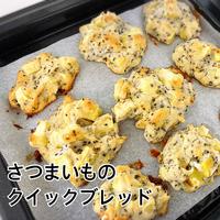 こねない!発酵させない!簡単なクイックブレッドに、さつまいもをたっぷり混ぜ込みました。ヨーグルト入りのさっぱりさわやかな生地に、ホクホクのさつまいもとごまの食感がよく合い、たまらないおいしさです。朝食にもおやつにもおすすめですよ。
