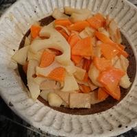 - 5 1、2を加えにんじん、レンコンがしんなりするまで中火で炒めます。