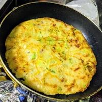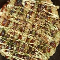 ちょっと水を多く入れすぎて生地が固まらなかったので片栗粉混ぜたらいい感じに焼けました。色々な具材が入って美味しかったです!