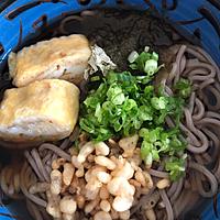 つゆは、作り置きのかえしを使い、お出汁は顆粒だし、昆布、あごを使ってます☺️玉子焼きをのせて食べるのも美味しいですよ♪薬味は,今の時期だと柚子の皮を入れるのが好きです😊ちなみに、かえしはちょと甘め!玉子焼きはお塩ひとつまみのみです。おつゆが少し甘めなので、玉子焼きはあっさりと仕上げます。あと、とろろ昆布ははずせません😋