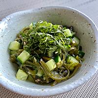 シャキシャキのきゅうりとネバネバのめかぶが絶妙にマッチする夏にぴったりの一品です。仕上げに添えたわさびの香りがフワッと立ち、食欲をそそります。めかぶの代わりにもずくを使ったり、ミョウガを加えたりとアレンジも自在。ごま油の香ばしさとポン酢のさっぱり感で箸が進みます。冷やして食べると更に美味しく、暑い日のおかずやおつまみとしても最適です。