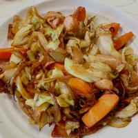 キャベツは長時間炒めると水分が出てきます。調味料を入れた後は焦げやすいので、さっと手早く炒めてください。