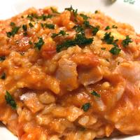玄米で とろーりチーズのガーリックトマトリゾット風 レシピ・作り方