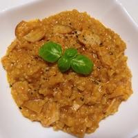 お肉も食べたくて手羽元をぶち込んだため、別物感がすごいですが美味しかったです!リゾットのご飯は柔らかめが好みなので、長めに煮ました。