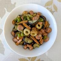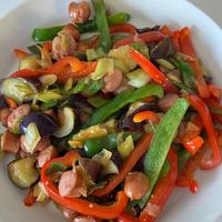 白髪ねぎはお好みの量調節して下さい。 ウインナーはベーコンでも代用出来ます。 調味料を入れる際、強火のままですと醤油が焦げ付いてしまうので必ず弱火にしてから入れて下さい。 赤パプリカやナスの他にキャベツや人参などの根菜類を入れても美味しく召し上がれます。