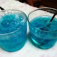オレンジジュースと、ブルーハワイ混ぜて作りました❢簡単で、冷たくて、優しい甘さだ、家族に喜んでもらえました〜!