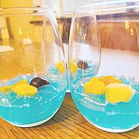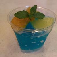 炭酸水やサイダーを使うことでシュワシュワとした爽やかな食感が楽しめるゼリーです。ブルーハワイシロップで美しい青色に仕上がり、黄桃やマンゴーなどのフルーツを飾り付けることで見た目も華やかなデザートに。甘さは控えめですが、グラニュー糖を追加したり、シロップを調整したりと好みの甘さに簡単にアレンジできます。子供から大人まで喜ぶ、涼しげな一品です。