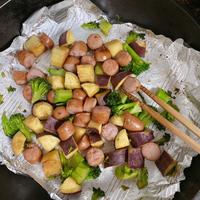 簡単でした!ベーコンの代わりに家にある肉を使いました。ブロッコリーは冷凍を使いました。さつまいもは甘いおかずが多いのでまた作りたいです!