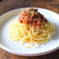 スパゲティのゆで時間はパッケージに記載されている時間を目安にしてください。 牛豚合いびき肉は、豚ひき肉や鶏ひき肉に代えてもお作りいただけます。