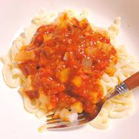 大根でかさ増しした節約ミートソーススパゲティはいかがでしょうか。大根にミートソースが染みていつもとは違う食感と味わいが楽しめます。辛味がお好きな方はお好みでペッパーソースをかけてもおいしくお召し上がりいただけます。ぜひお試しくださいね。