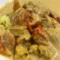 ココナッツミルクで滑らかになり、子供も「美味しい♡」と😋❣️シーフードミックスで作りました❗️玉ねぎたっぷりにして😊美味しかったでーす💕