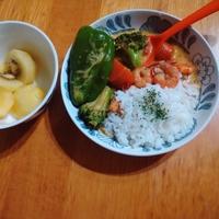 サフランライスにしてみました。 見た目に、まっ黄黄になり過ぎたかも? でも美味しい! 具材はチキンもありかも。