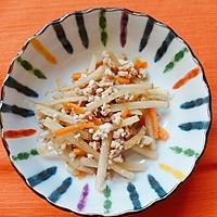 - 1 にんじんは、斜めに薄切りにしてから千切りにします。