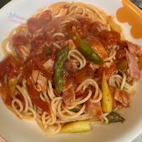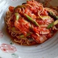 アスパラガスとベーコンのトマトパスタ レシピ・作り方