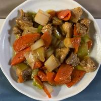 人参が無かったので茄子で作りました。簡単で美味しかったです!鶏肉を一度出してその油で野菜を炒めたからか、野菜から水分が出てべちょべちょという事がありませんでした。鶏肉も油が適度に落ちて良いです。