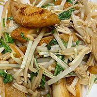 オイスターソースが 足りなかったので 麺つゆ多めで。水菜の代わりにピーマン使用。