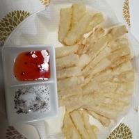 フライド大根スティックのレシピです。大根を揚げるだけでお手軽に作れますよ。カリカリの衣で食べると大根のうま味が広がりおいしいですよ。今回は塩を添えましたが、大根に味付けはしていないのでケチャップやソースなどなんでも合いますよ。ぜひいろいろ試してみてくださいね。