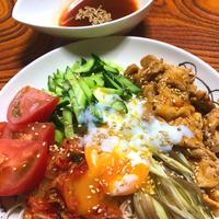 これからの暑い時期や、食欲のあまり無い時にぴったりの韓国風ピリ辛ビビン麺です。今回は冷麺を使わず、手頃に買えるそうめんを使って作ってみました! 甘辛のタレを絡め、お好みの具材と一緒にお召し上がり下さい!