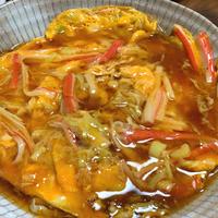 こんなに美味しく甘酢あんを作れたのは初めてです!感動の美味しさヽ(=´▽`=)ノ食べれぽを参考に千切りキャベツはレンチンで3分ほど加熱。春キャベツの甘みがしっとり♡その上に小さめのフライパンで卵液を流して作りのっけて最後に餡を。カニカマは3本と言わずたっぷりいれて大正解!餡は片栗粉を入れる前の段階で長ねぎを細かく切って一緒に煮込み最後に片栗粉を入れてとろみをつけました。とろみをつけるのが苦手なのですが、しっかりグツグツ煮ていたら次第にトロット柔かくなって上手くいきました。旦那にも好評だったのでまた作ります(◕ᴗ◕✿)2020.5.1