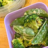 スナップえんどう無しでブロッコリーのみです。ソースは思っていたよりさっぱりしてました。レモン汁のお陰でしょうか。