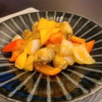 - 1 黄パプリカは乱切りにします。玉ねぎは一口大に切ります。ピーマンは乱切りにします。