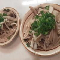 きのこは他にもしいたけや白しめじなど、いろいろなきのこで代替できます。梅干しはチューブの梅肉を使用する場合は小さじ2杯入れてください。