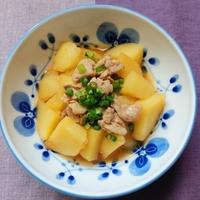 - 7 じゃがいもにやわらかくなったら(A)を加えて中火で煮汁がなくなるまで煮ます。
