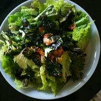 キムチ、韓国のり、ごま油と、韓国食材たっぷりのサラダです。 ピリ辛な味付けは食欲をそそります。 新鮮な野菜をもりもり食べましょう。 レタス以外にも、きゅうりやトマトなど様々な野菜でアレンジしてみてください。