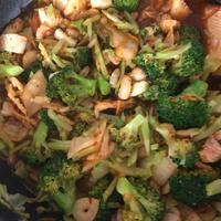 ブロッコリーは350gくらい、シーフードを150j程、キムチは220gで、レシピの調味料に加えて中華だしを追加しました。