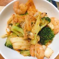 ブロッコリーとシーフードミックスのキムチ炒め レシピ・作り方