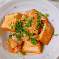 和風の味付けでしか厚揚げ使ったことなかったけど、豆板醤も合いますね♪玉ねぎプラスで、コチュジャンなくて味噌少し足しました。