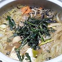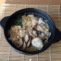 - 5 土鍋に3、2の順に入れて4を注ぎ、蓋をして中火にかけます。野菜から水分が出て沸騰してきたら弱火にして15分程アクを取りながらアンコウに火が通るまで煮たら完成です。