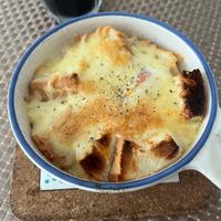 パンがミルクに浸されてふわシュワな食感が楽しめる朝食メニューです。牛乳とコンソメだけのシンプルな味付けながら、トースターで焼くだけの手軽さが魅力。チーズやウインナーを追加したり、豆乳に変えたりとアレンジも自在。とろーり半熟卵との組み合わせが絶妙で、忙しい朝にぴったり。パンはカリッと焼き目をつけると、食感の変化も楽しめます。