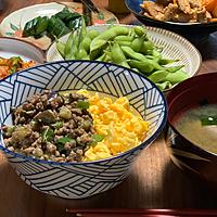 丼にしたかった為、炒めた後のフライパンでそのまま炒り卵も作り、2色丼にしてみました。