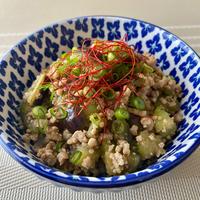ナスは冷凍揚げナスを使用することで時短に◎