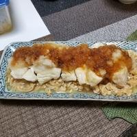 - 4 お皿に盛り付け、大根おろしを乗せ、ポン酢をかけて完成です。