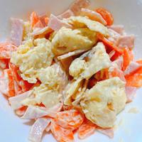 しゃがいもは水で濡らしたキッチンペーパーに包んでレンジでチンしました。ニンジン・玉ねぎ・きゅうりはかなり薄切りにしたらじゃがいもによく絡みついて食べやすくなりました。