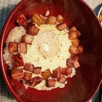 「【鳥羽シェフ】ベーコンエッグ丼」の作り方を簡単で分かりやすいレシピ動画で紹介しています。
