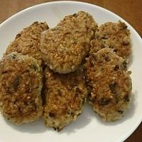 ごはんとひき肉で作るおやきです。ごはんやひき肉が少し余ってしまったときにもおススメです。お好みで、ポン酢や醤油につけてお召し上がりください。捏ねて、フライパンで焼くだけでできるので、とても簡単です。是非お試しください。