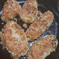 手で整形せずしゃもじでフライパンの上に直接乗せましたが意外と形もよく綺麗に焼けました!美味しかったです!