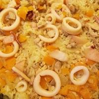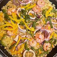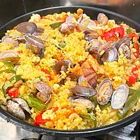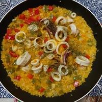 下ごしらえが結構大変でしたが美味しく初パエリアできました。米は、洗いましたが問題なく出来ました。サフラン無かったのでカレー粉のみ、ワインなしです。