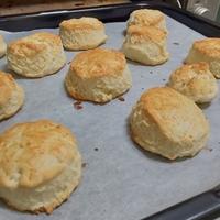 15分だとまだ少し生焼けだったので温度を150℃に下げて5分追加しました。生クリームを消費したかったので牛乳を生クリームに変更して作りました。初ビスケットなので比較できないですが、おそらくより優しいふんわりした味になったのでは、?と思います、、美味しかったです!