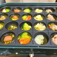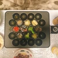 オイルがジュワッと香る本格アヒージョを、たこ焼き器で手軽に作れます。エビ、タコ、イカなどの魚介類やブロッコリー、エリンギ、ミニトマトなど好みの具材を入れて楽しめます。温度は150度程度の低めに設定がポイントで、ガーリックの香りが食欲をそそります。フランスパンをディップして食べるのがおすすめで、パーティーやおもてなしにぴったり。ワインのおつまみとしても最高です。