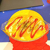 - 5 中心が膨らんできたら、ケチャップ、マヨネーズ、パセリをかけて完成です。