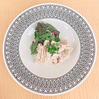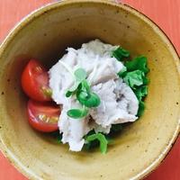 - 4 お皿に千切ったレタス、3の順に盛りつけ、かいわれ大根をのせたら完成です。