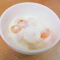 - 5 みかん缶、3、さくらんぼ缶、4を混ぜて冷蔵庫で30分ほど冷やしたら2を入れて混ぜます。器に盛り付けて完成です。
