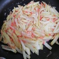 小さめのじゃがいも5個で、レシピ通りに作りましたが、火の通りがまばらでフライパンにくっついてしまう箇所もあり、結局全て混ぜてしまいました。